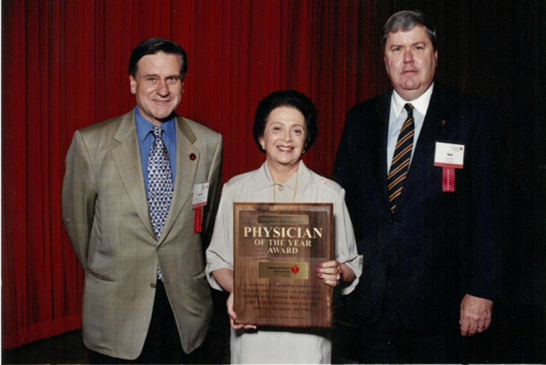 Nanette Wenger receives Physician of the Year Award from the American Heart Association, 1998.